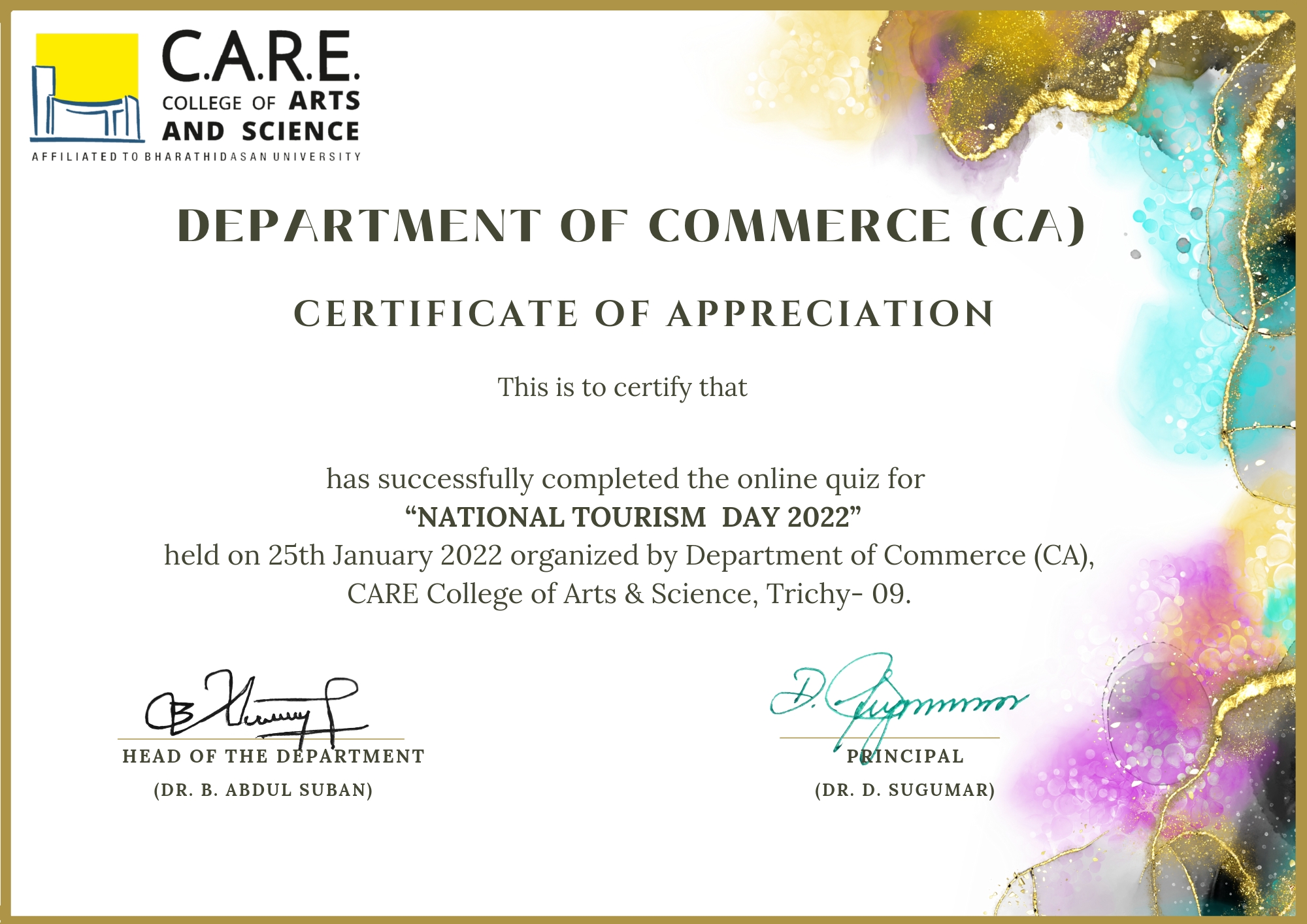 National Tourism Day 2022 by Editor The Department of Commerce (CA) has conducted the Online E-Quiz programme for National Tourism Day on 25th January 2022.