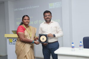 Dr. D. Sugumar, Principal, presided over the session and highlighted the importance of such initiatives in preparing students for a competitive and evolving job market. The session was effectively coordinated by Dr. B. Devibala, Assistant Professor, Department of English, who ensured the smooth execution of the event. The session proved to be highly informative and motivating, leaving students with a clearer perspective on their career goals and workplace expectations.