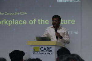 The session was delivered by Mr. M. Ganesh Thirunavukkarasu, Founder & CEO of UniqShift Ventures, who shared deep insights into the changing landscape of the corporate world. He discussed key attributes that define successful corporate cultures, emerging trends in workplace practices, and the skills students must develop to thrive in the future workplace. With real-world examples and engaging interaction, the session encouraged students to understand the mindset, adaptability, and innovation needed in modern professional environments.