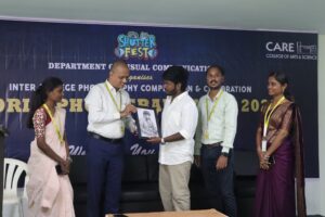 The Department of Visual Communication organised Photography Contest 2K25 on 16th August 2025 at 10.00 am in the CARE premises. The contest invited participants to capture creative perspectives under three exciting themes – Monochrome, My City My Pride, and Colours of Light. The event provided a vibrant platform for students to showcase their artistic vision, technical skills, and storytelling ability through the lens.
