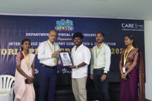 The Department of Visual Communication organised Photography Contest 2K25 on 16th August 2025 at 10.00 am in the CARE premises. The contest invited participants to capture creative perspectives under three exciting themes – Monochrome, My City My Pride, and Colours of Light. The event provided a vibrant platform for students to showcase their artistic vision, technical skills, and storytelling ability through the lens.