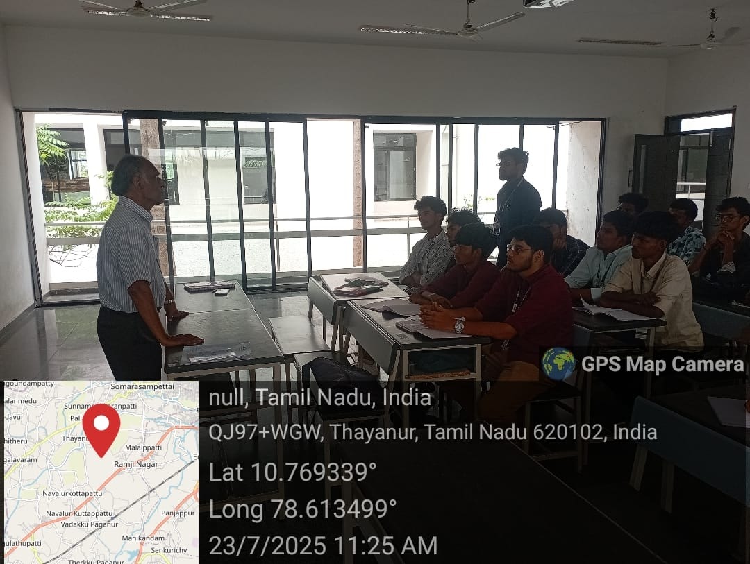 The Department of Mechanical Engineering, CARE College of Engineering, organized an impactful Motivational Session on 23rd July 2025, featuring renowned motivational speaker Mr. T. Vasanth Kumar. The event took place in the classroom from 11:00 AM to 12:00 PM, with active participation from the Mechanical Engineering students.