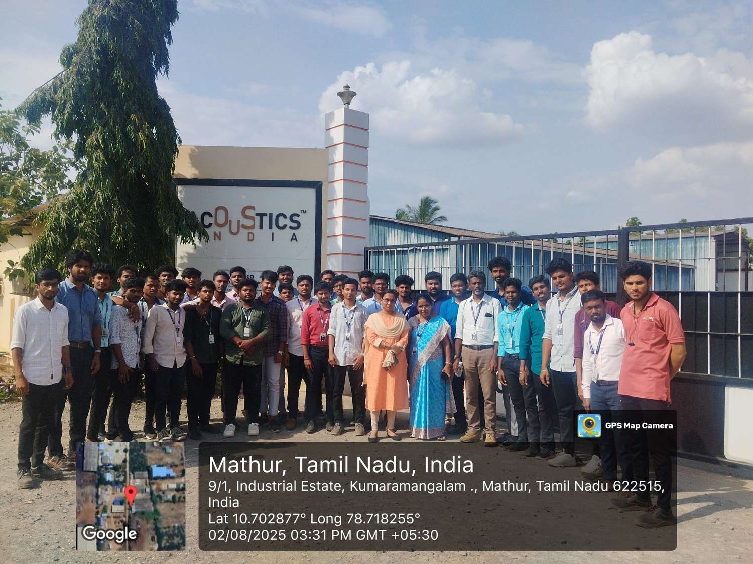 The program commenced with a Safety Orientation session by Mr. Rajesh, Manager, where students were briefed on safety measures and protocols essential for industrial environments. This was followed by a Corporate Presentation by Mr. S.R. Surya, Manager, providing an overview of the company’s operations, products, and market approach. Post a short break, students were divided into three teams for the shop floor visit led by Mr. Madhudeepan (Dy. Manager), Mr. Joel (Engineer), and Mr. Ashik (Engineer).During the visit, the teams observed various manufacturing processes, including pressure vessels, heat exchangers, and control valve manufacturing, along with operational workflows, gaining valuable insights into lean tools such as 5S and Kaizen in action.After lunch, a session on Lean Management was conducted by Mr. Gowtham, Sr. Manager, where concepts of waste reduction and productivity improvement were discussed. This was followed by feedback and an industry overview by Mrs. Pavithra, HR/Head, who highlighted career opportunities, skill requirements, and the company’s vision for future growth.Finally, the program concluded with an interactive discussion, a group photograph with the company’s employees, and a vote of thanks delivered by Mr. A. Antony Luki M.E., (Ph.D.), Assistant Professor. Special thanks to Mrs. S. Saraswathi PA to the Principal, CARE College Of Engineering for her reference to the industry. his one-day industrial exposure provided students with a better understanding of mechanical systems, workplace safety, and problem-solving approaches, inspiring them to integrate these learnings into their academic projects and future professional endeavors.