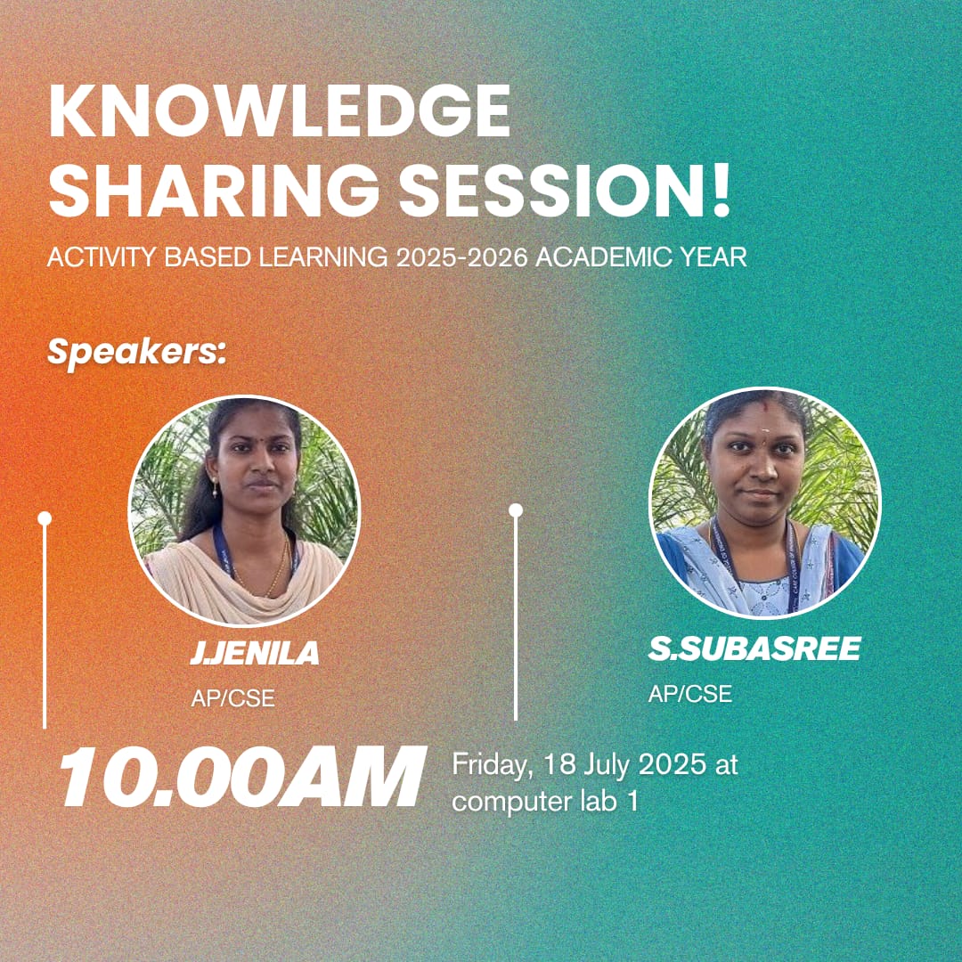 The Knowledge Sharing Session successfully demonstrated the value of active and collaborative teaching strategies. It empowered faculty with tools and methods that foster student engagement and deeper learning.