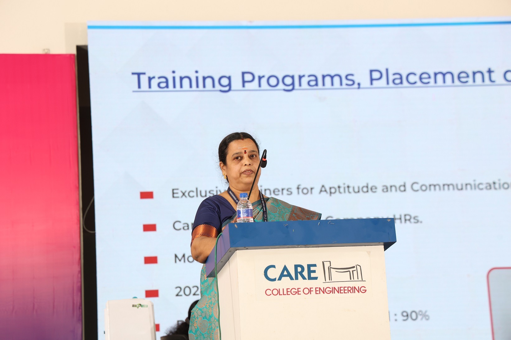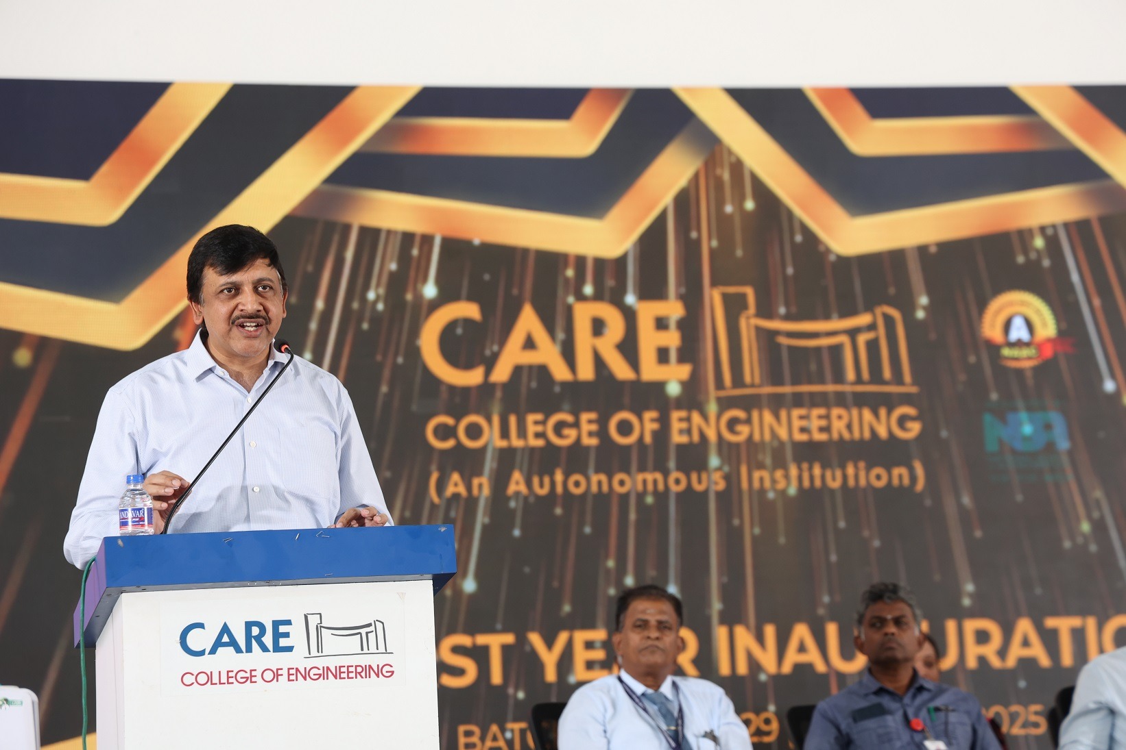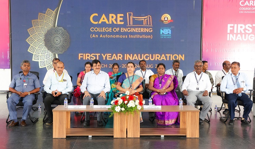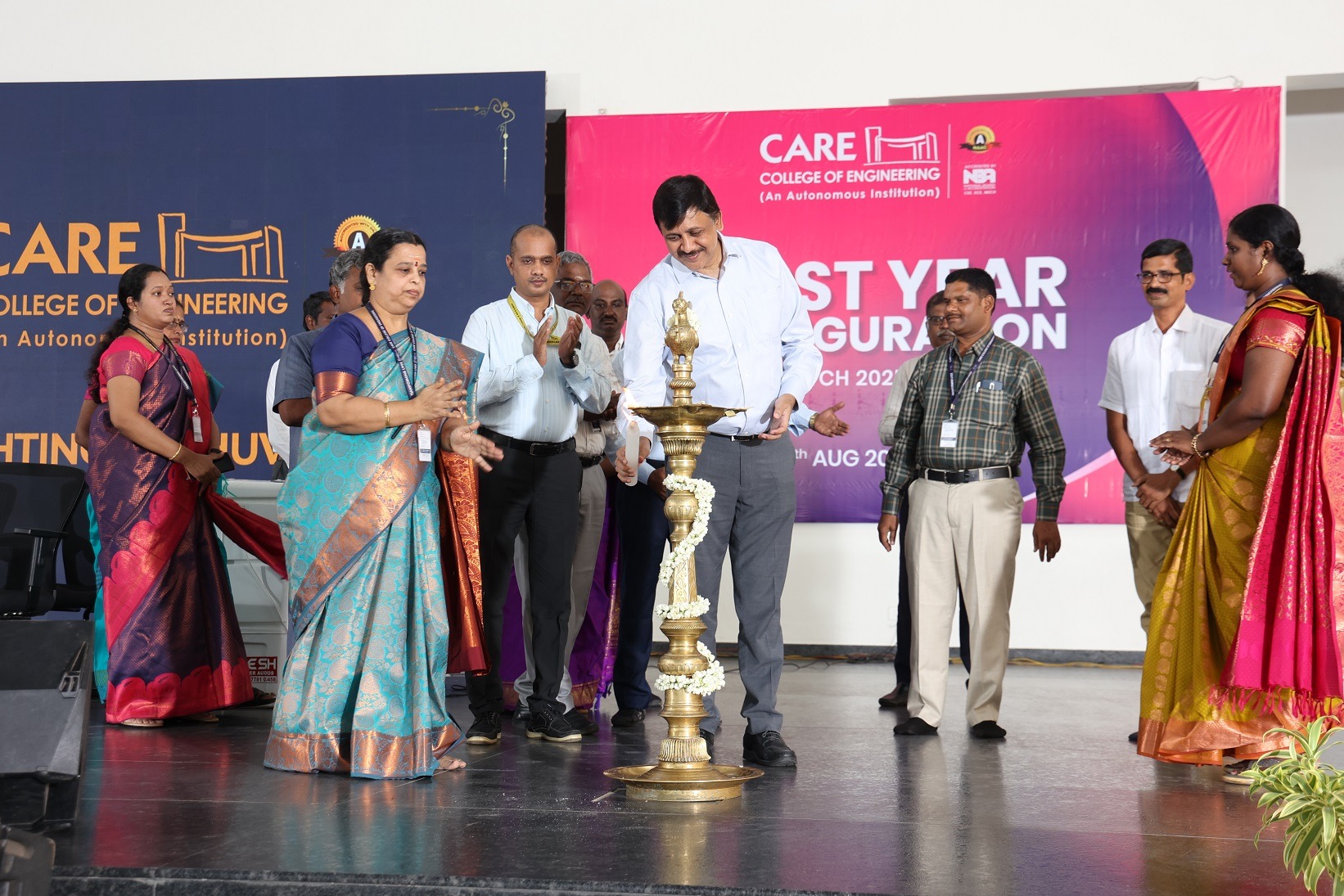 The First Year Inauguration Function for the academic year 2025-26 was held on 24th August 2025 at CARE College of Engineering. The event began with the traditional lamp lighting, followed by a welcome address. The Principal, Dr. S. Shanthi, shared the vision of the institution and emphasized the importance of discipline and innovation. Mr. Prative Chend, CEO of CARE Group of Institutions, delivered an inspiring address, motivating students to pursue academic excellence and holistic development. The function concluded with a vote of thanks, marking a memorable beginning for the new batch of students.