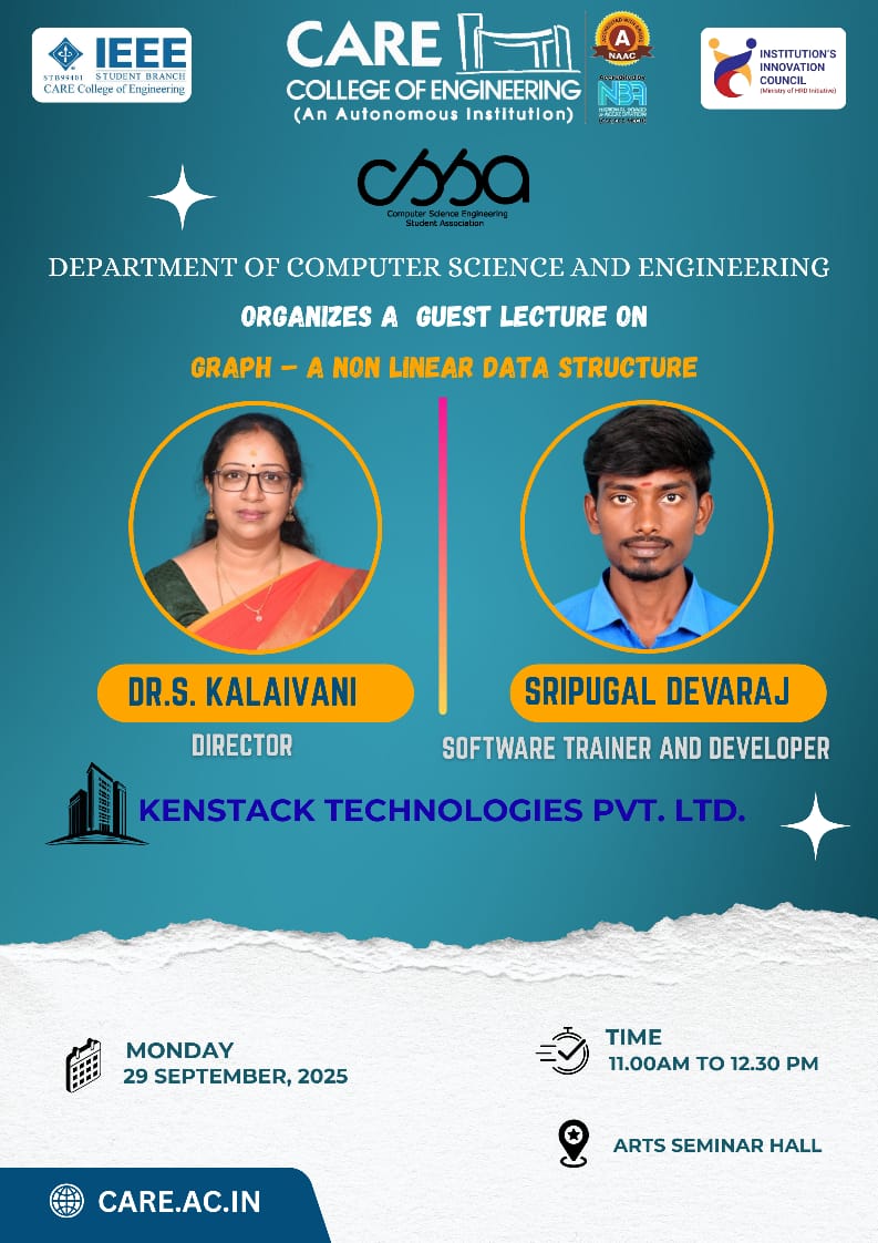The Department of Computer Science and Engineering, in association with the CSSA Association, organized a guest lecture on “Graph – A Non-Linear Data Structure” for the second-year students on 29th September 2025.