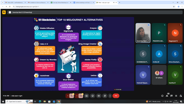 CARE College of Engineering (Autonomous), Tiruchirappalli, through the Department of Electronics and Communication Engineering (Anna University Approved Nodal Research Centre), successfully organized a One-Day Online Workshop titled “Next-Generation Research Writing: Practical AI Tools for High impact publications on 2.1.2026. The workshop was conducted with the objective of enhancing research writing skills and familiarizing faculty members and researchers with practical AI-enabled tools for high-quality scholarly publications.The workshop was delivered by Dr. K. S. Sowmiya Rani, Ph.D., Founder, Sowmis_AWW, Coimbatore, an experienced academic trainer and editor in research writing. Her expert guidance and practical demonstrations enabled participants to understand and apply AI tools effectively in their research workflow. A total of 74 participants attended the workshop, comprising approximately 45 internal faculty members from CARE College of Engineering and 30 external participants from various colleges. The program successfully empowered participants with next generation research writing skills and reinforced the importance of responsible AI usage in scholarly communication.