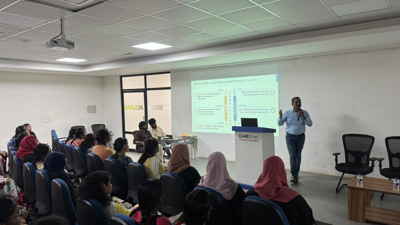 The expert talk was highly informative and successful in achieving its objectives. Students gained a clear understanding of renewable energy fundamentals, advanced solar technologies, and emerging opportunities in the renewable energy sector. The Department of Mechanical Engineering sincerely thanks the resource person and the management of CARE College of Engineering for their continuous support in organizing the program.
