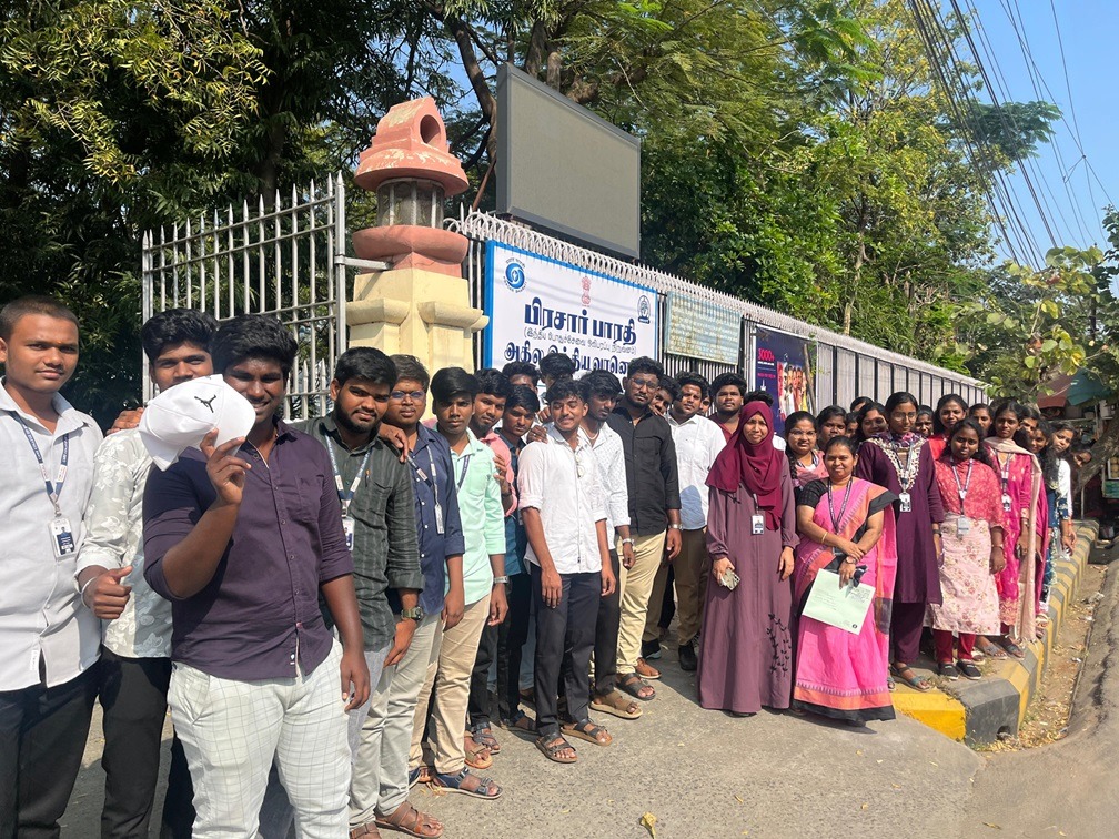 Department of Electronics and Communication Engineering organized an Industrial Visit to All India Radio (AIR), Trichy as a part of the curriculum for U24EC431- Communication Systems for II Year ECE students on 12.02.2026 (Thursday). The visit was conducted for the hands-on experiential learning aligned with SDG 9 – Industry, Innovation and Infrastructure, focusing on real-world understanding of FM broadcasting systems, radio receivers, and noise removal techniques. This visit enabled students to gain exposure to broadcasting technology, signal processing systems, and communication infrastructure.
