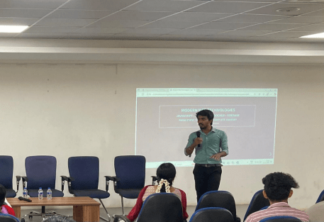 The resource person, Mr. J. Ganesan, Senior Web Application Developer, Hello Leads CRM, provided expert guidance and hands-on training to III Year CSE students (Sections A & B). The session included both conceptual explanation and practical implementation, where students executed programs in real time. Key topics covered were PHP basics and form validation, XML fundamentals and execution, and an introduction to AngularJS, using tools such as VS Code and WAMP Server.