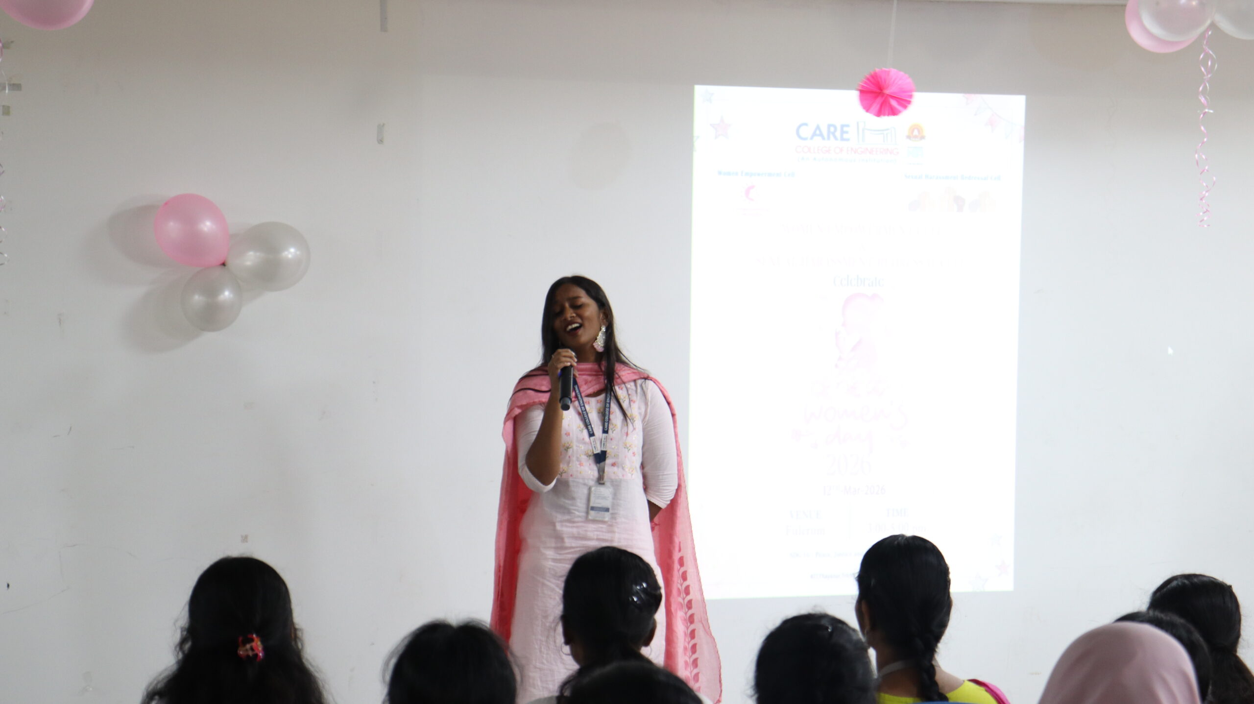 International Women’s Day was celebrated at CARE College of Engineering from 3.00 Pm to 5.00 Pm at two different venues , Fulcrum & Engineering Seminar Hall, on 12th March 2026. Dr.S.Shanthi , Principal addressed the First year students and asked them to balance confidence and humility. As women they have to safeguard themselves against all odds in their lives.