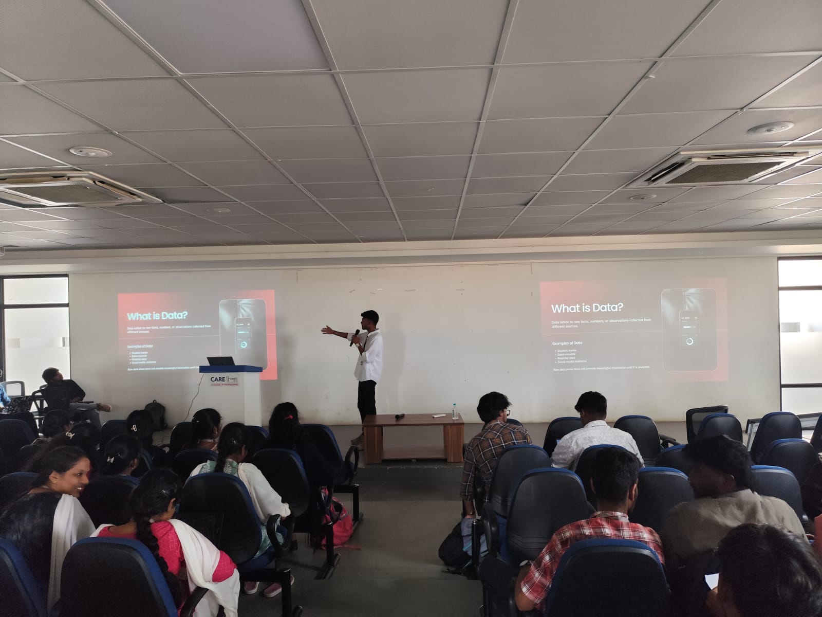The workshop aimed to provide foundational knowledge and practical exposure in emerging areas of technology, focusing on bridging the gap between theoretical concepts and real-world applications. It was designed to enhance students’ skills in web technologies, design principles, and data analysis.