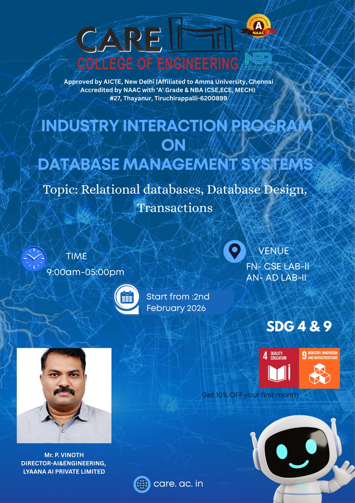 We are delighted to announce our One-Day National Level “CARE TECH FEST’25” and warmly invite you to be a part of this prestigious event. The fest will serve as an excellent platform for students to showcase their talents, exchange innovative ideas, and explore the latest trends in Engineering and Technology. 📅 Date: 16.10.2025📍 Venue: FULCRUM,...Read More