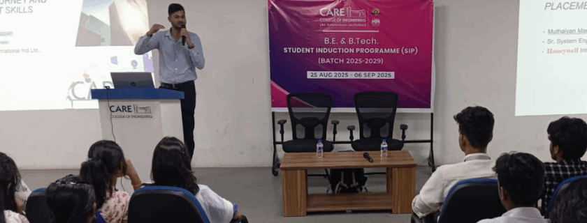 The guest lecture on “Industrial Applications of Engineering Chemistry” held on 18/11/2025 at the Engineering Seminar Hall, CARE College of Engineering (11:00 AM–1:00 PM), delivered by Dr. K. Jothi Venkatachalam, offered deep insights into why chemistry matters in engineering. He explained core principles such as thermodynamics, kinetics and reaction mechanisms, material & energy balance, and […]