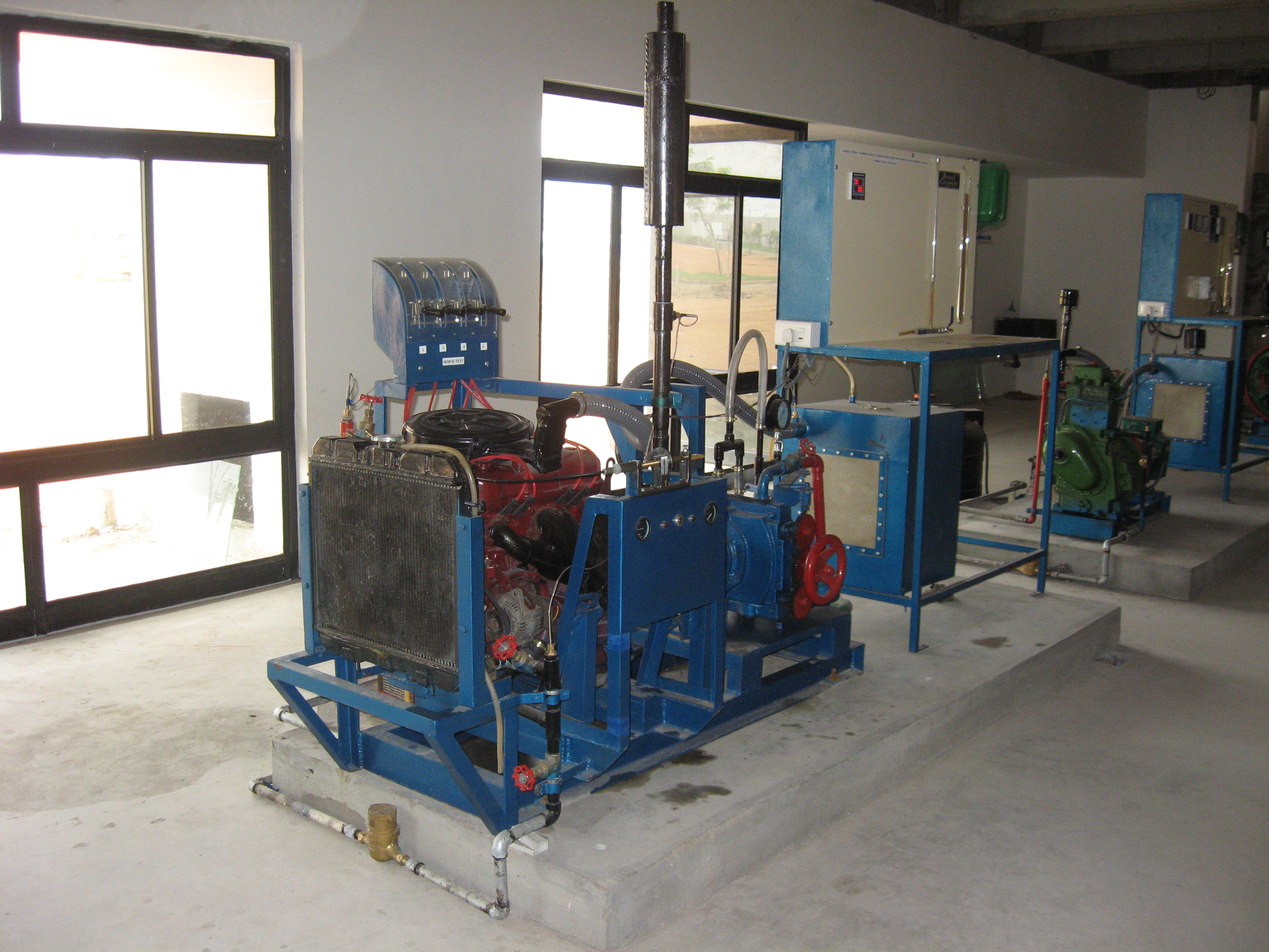 In this lab the performance and emission characteristics of Petrol engine, Diesel engine, Multicylinder engine are determined. The properties of petroleum fuels like flash & fire point, dynamic viscosity and kinematic viscosity are also determined. The cutsection models of two stroke and four stroke engines are used to draw the port timing and valve timing diagrams. The performance of the boiler and turbine are detrmined in the Steam power lab.