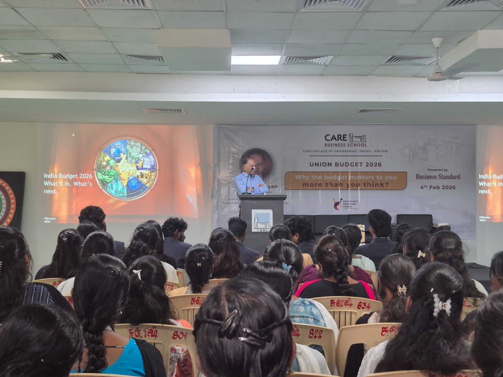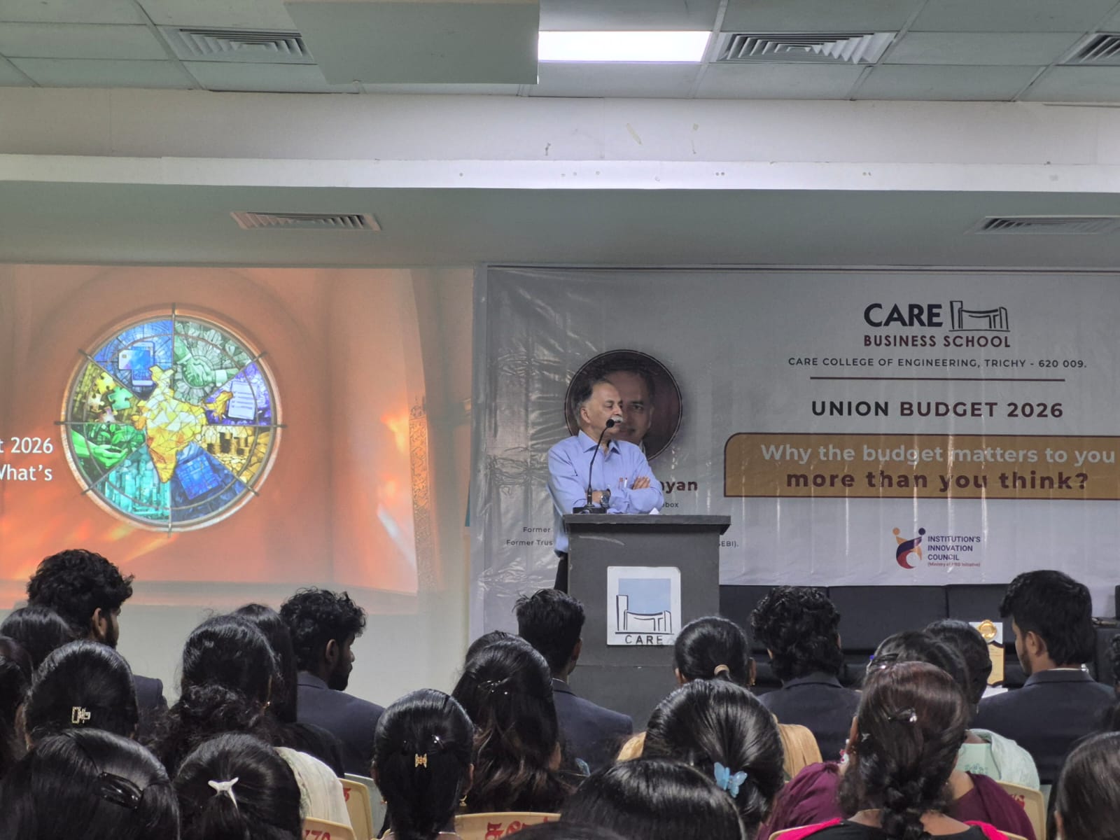 CARE Business School, Tiruchirappalli, successfully organized a special academic programme on the theme “Union Budget 2026 – Why the Budget Matters to You More Than You Think?” on 04 February 2026 (Wednesday) at 10:00 a.m. on the college premises.