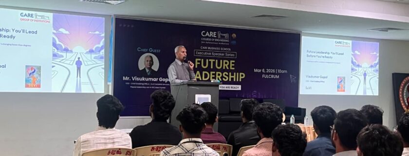 As part of the Executive Speaker Series, an engaging session on “Future Leadership” was conducted for MBA students, featuring Mr. Visukumar Gopal, CEO – SuVi Versatile Services.